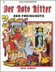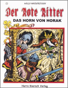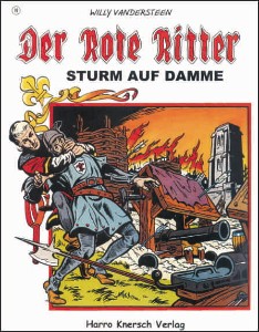 Die Figur des ROTEN RITTERS basiert auf einer Romanserie des flämischen Jugendschriftstellers Leopold Vermeiren (1914-2005), die dieser 1946 kreierte. Im Dezember 1959 startete Willy Vandersteen (1913-1990) die Comicadaption der erfolgreichen Reihe, zunächst gezeichnet von Karel Verschuere (1924-1980) und Eduard de Rop (1928-2007), später von Frank Sels (1942-1986), bis sie schließlich 1967 von Karel Biddeloo (1943-2004) übernommen wurde, der sie bis zu seinem Tod textete und zeichnete. 2006 traten dann von Martin Lodewijk (*1939) als Texter und Claus D. Scholz (*1949) als Zeichner Biddeloos Nachfolge an.